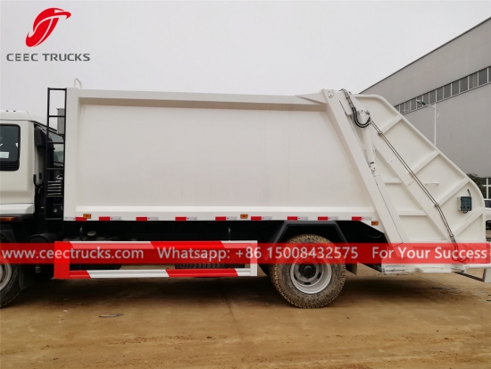 Hochwertiger ISUZU 12 cbm Müllverdichter, der verwendet wird 4HK-Dieselmotor der Marke ISUZU mit einer Motorleistung von bis zu 240 PS, MLD 6-Gang-Schaltgetriebe für einfache Bedienung, robustes Qualitätsstahlmaterial Verdichterkörper mit Rostschutzlackierung innen und außen, alle Logos wie erforderlich.