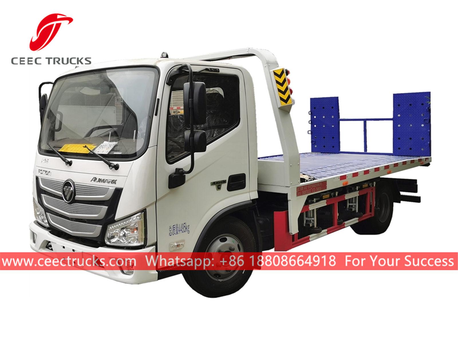 Foton 3-Tonnen-Straßenabschleppwagen, 4x2-Fahrgestell, manuelles 5-Gang-Schaltgetriebe Getriebe, CUMMINS 130 PS Dieselmotor, lange Plattform mit Hydraulik Zylinderbearbeitung, Lackierung und Logos hängen von den Anforderungen ab.