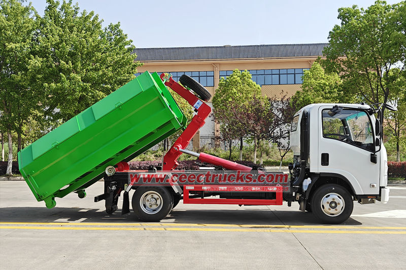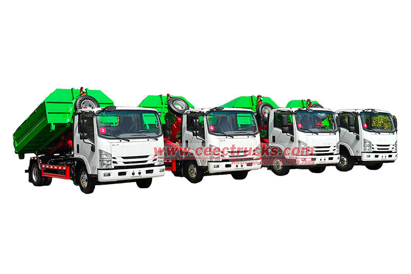 Isuzu NPR-Hakenlift-Müllwagen, auch Isuzu ELF-Hakenlader, Isuzu NPR-Hakenlift-LKW, Isuzu 10cbm-Hakenarm-Müllwagen, Isuzu ELF-Hakenlift-Müllwagen, Isuzu 4x2-Hakenlader-LKW usw. genannt. Das Fahrzeug ist auf dem Isuzu ELF-Chassis mit 3360 mm Radstand modifiziert und mit einem leistungsstarken Isuzu 4HK1-TCG61-Dieselmotor und einem Isuzu MLD 6-Gang-Getriebe ausgestattet, das kraftvoll und sanft schaltet und so hervorragende Fahrleistung und Betriebsstabilität gewährleistet.