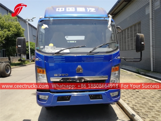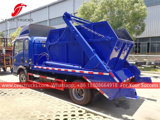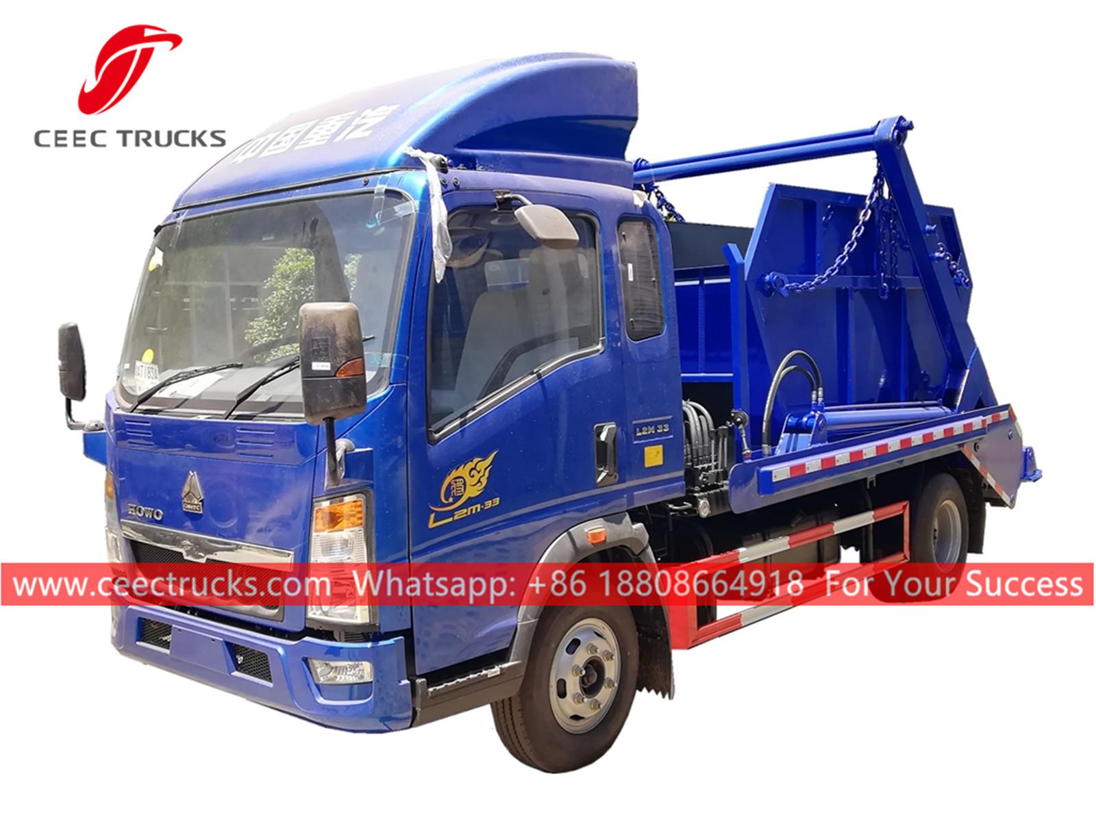 HOWO 6cbm Absetzkipper-Müllwagen, HOWO 4x2-Fahrgestell, manuelle 6-Gang-Schaltung Schaltgetriebe, 120-PS-Dieselmotor, Schwinge aus hochfestem Stahl System, hydraulisches Steuergerät und elektrischer Steuerkasten optional. Alle Bemalung und Logos hängen von der Anforderung ab.