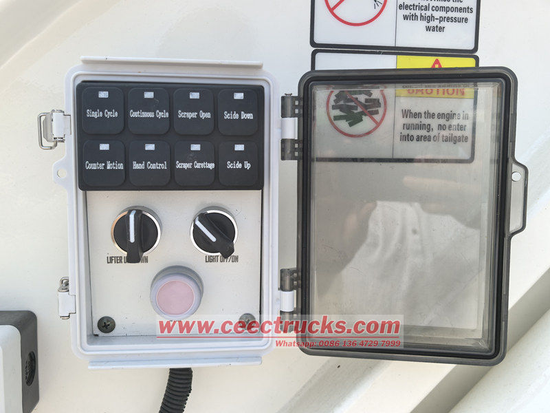 Der Isuzu Hecklader-Müllwagen ist mit einem fortschrittlichen Betriebssystem ausgestattet und nutzt eine Computer- oder SPS-Steuerung. Er ist einfach zu bedienen und hochautomatisiert. Der Fahrer kann das Be- und Entladen des Mülls bequem über das Bedienfeld im Kontrollraum oder den Bedienkasten am Fahrzeugheck erledigen. Darüber hinaus bietet das Fahrzeug verschiedene Betriebsmodi, wie z. B. Voll- und Halbautomatik, um unterschiedlichen Betriebsanforderungen gerecht zu werden. Dieses Design reduziert den Arbeitsaufwand der Müllabfuhr und verbessert die Arbeitseffizienz.