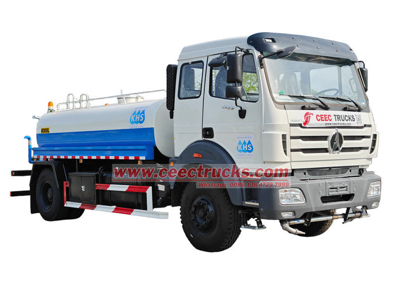 4X4, RHD drive type avaiableDer 10 cbm große Wassertankwagen von Beiben ist ein Spezialfahrzeug für die städtische Abwasserentsorgung und den kommunalen Ingenieurbau und vereint Wasserspeicher-, Transport- und Sprühfunktionen. Er ist mit einem großvolumigen Kohlenstoffstahltank, einer Hochdruckwasserpumpe und einem einstellbaren Düsensystem ausgestattet und unterstützt verschiedene Betriebsarten wie Seiten-, Heck- und Hochdruckspritzen. Beiben Wassertankwagen-Verteilerwagen hat ein breites Anwendungsspektrum. Es kann nicht nur Straßenstaub unterdrücken und die Luft durch Zerstäubung reinigen, sondern auch die Straßenoberfläche bei hohen Temperaturen kühlen; es kann auch zur Grüngürtelbewässerung, zur Staubreduzierung auf Baustellen, zur Brandbekämpfung und zur Straßenreinigung eingesetzt werden. Es ist ein Allrounder, der für Sauberkeit in der Stadt sorgt und die ökologische Umwelt erhält.