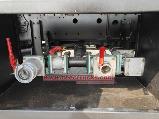 Der Oberkörper besteht aus einem ellipsenförmigen Wassertank aus Kohlenstoffstahl mit einem Fassungsvermögen von 10 Kubikmetern. Er ist mit einer WEILONG 80QZF-60/90S Pumpe und beidseitigen Rohrleitungsaufbewahrungsboxen ausgestattet. Die Rückseite des Tanks ist eine Arbeitsplattform mit einer Hochdruck-Wasserspritzpistole und einer tragbaren Feuerlöschpumpe. Darüber hinaus verfügt das Fahrzeug über drei Sprühmodi: Front- und Hecksprühdüse sowie Wasserwerfer-Sprühüberwachung, die verschiedene Bewässerungsanforderungen erfüllen.