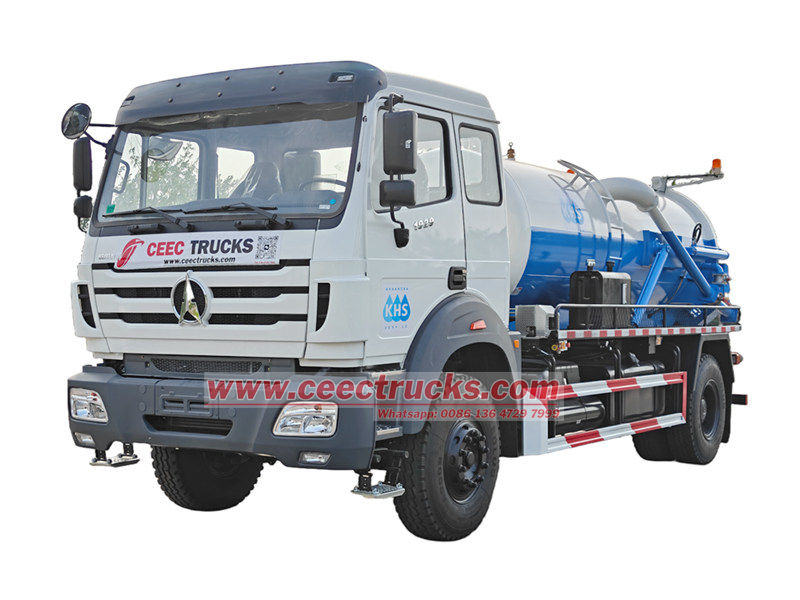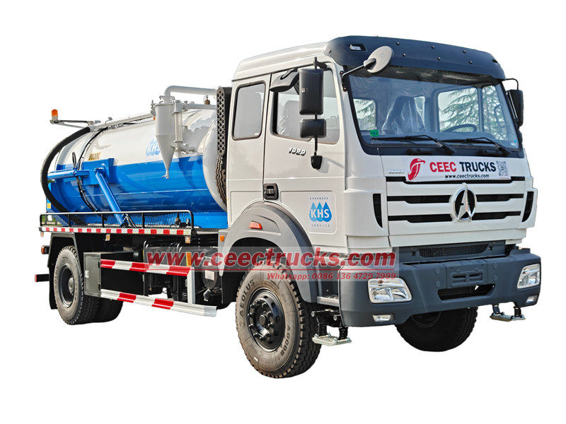 Der Beiben 8cbm Klärgruben-Tankwagen basiert auf dem Beiben 1929-Chassis mit einem Radstand von 4800 mm, einem Euro-3-Dieselmotor mit 9,726 l Abgasausstoß, einem 290 PS starken WP10.290E32-Dieselmotor, einem FAST 9JS150A-Getriebe und sieben 12.00R20-Reifen. Er ist leistungsstark und einfach zu bedienen. Das Fahrzeug verfügt über einen 8cbm großen Vakuumtank, der verschiedene Baggerarbeiten, beispielsweise in städtischen Abwasserkanälen und Industrierohrleitungen, abdeckt.