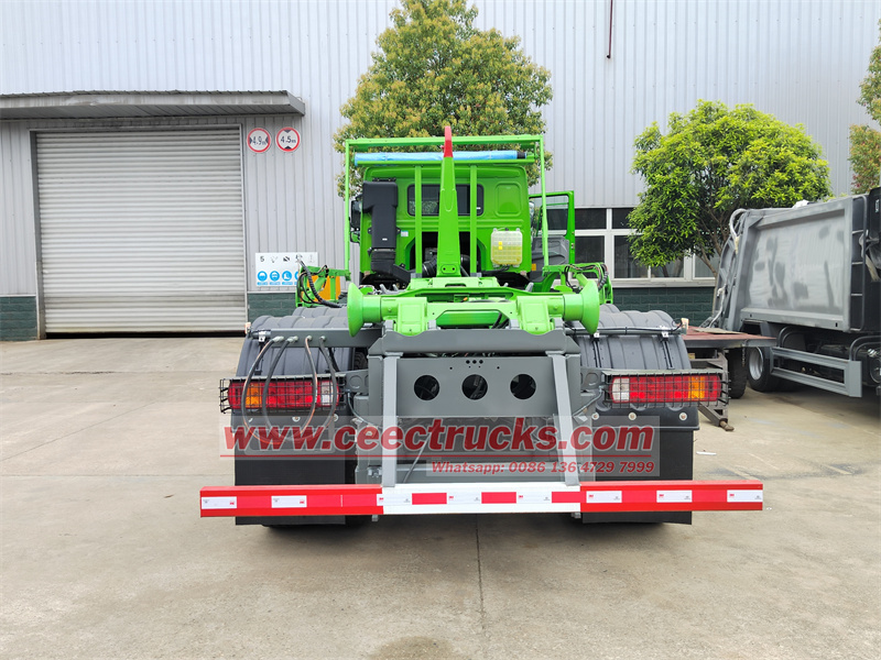 Der neu entwickelte 8x4-Abrollkipper nutzt das Fahrgestell der Sinotruk HOWO-Serie, das über eine hohe Tragfähigkeit und gute Fahrleistung verfügt. Das Hakenliftgerät besteht aus Hydraulikzylinder, Klapprahmen, Verriegelungsrahmen und anderen Komponenten. Der Arm kann durch die Wirkung eines Hydraulikzylinders ausgefahren, gekippt und verriegelt werden. Was die Mülltonnen betrifft, Es ist normalerweise versiegelt und verfügt über gute Leck- und Korrosionsschutzeigenschaften, wodurch sichergestellt werden kann, dass Müll während des Transports keine Sekundärverschmutzung verursacht.