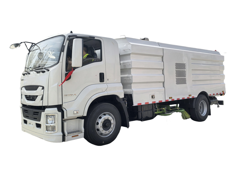 Isuzu GIGA Straßenkehrmaschine (auch Straßenkehrmaschine, Kehrfahrzeug, Straßenreinigungsfahrzeug, Straßenreinigungs-LKW, Straßenkehrfahrzeug genannt)ist eine Art auf einem LKW montierte Straßenkehrmaschine mit Saugfunktion, die speziell zum Reinigen von Straßen und zum Einsammeln und Abtransportieren von Müll zur Müllsammelstelle verwendet wird. Dieses Fahrzeug ist eine Straßenkehrmaschine der neuen Generation, die Kehr- und Saugfunktion kombiniert. Sie eignet sich hauptsächlich für mechanische Reinigungs- und Kehrarbeiten in Stadtstraßen, auf öffentlichen Plätzen sowie in großen Fabriken und Bergwerken.