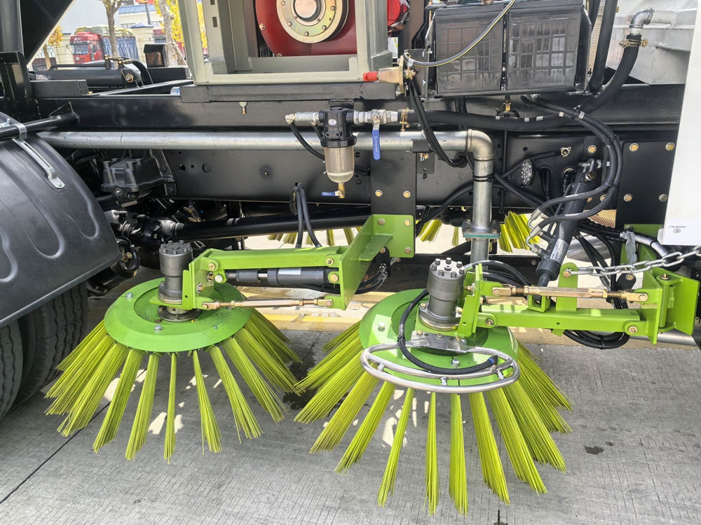 A-†Der Straßenreinigungswagen von Isuzu verfügt über hochfeste Nylonborsten. Haupt- und Zusatzbürsten arbeiten zusammen, um Geschwindigkeit und Bodendruck an unterschiedliche Straßenbedingungen anzupassen. Der Bürstenwinkel lässt sich automatisch anpassen, um tote Winkel bei der Reinigung zu vermeiden. Gleichzeitig verfügt er über eine automatische Hindernisvermeidungsfunktion und kann bei Hindernissen schnell angehoben werden.