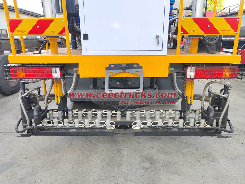 Am Heck des Fahrzeugs befindet sich ein ausfahrbarer Spritzbalken (Länge einstellbar von 2 bis 6 Metern), der mit einer Hochdruck-Kreiselpumpe und einer Fächerdüse ausgestattet ist. Sprühbreite und Durchflussmenge lassen sich über den Bordcomputer stufenlos (0,3 bis 3 l/m²) einstellen, um den Anforderungen verschiedener Verfahren wie Penetrationsbeschichtung, Haftbeschichtung und Versiegelung gerecht zu werden.