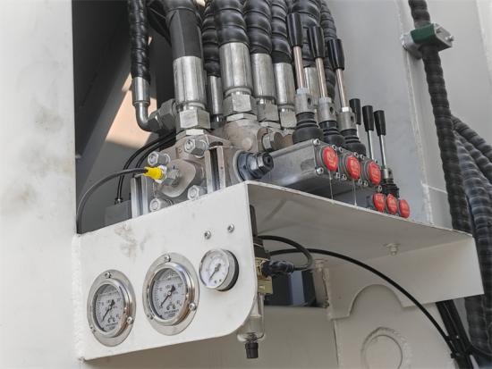 2. Fahrerseitiges manuelles Betätigungsventil: Die Steuerung des Kippmechanismus, des Hebens/Senkens der Heckklappe, des Drehens/Schließens des Abstreifers, der Bewegung der Gleitplatte, des Aus-/Einfahrens des Schiebers usw. erfolgt manuell von der Fahrerseite aus.