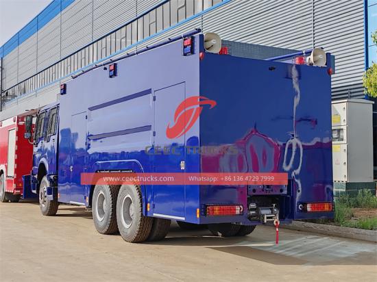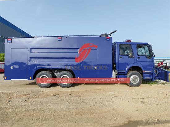 High-strength aluminum alloy or titanium alloy framesHowo 6x4 Anti-Aufruhr-Wasserwerferfahrzeugverwendet ein rundum explosionsgeschütztes Design von Materialien, Strukturen und Systemen, um die sichere und effiziente Ausführung von Aufgaben in extremen Umgebungen zu gewährleisten.Der Fahrer muss sowohl über besondere Fahrkenntnisse als auch über Notfallfähigkeiten verfügen, und sein Einsatz konzentriert sich stärker auf präventive Sicherheitsmaßnahmen und die Zusammenarbeit aus der Ferne. Der gepanzerte Howo-LKW zur Kontrolle von Menschenmengen ist eine unverzichtbare Sicherheitsausrüstung in der Erdöl- und Chemieindustrie usw.