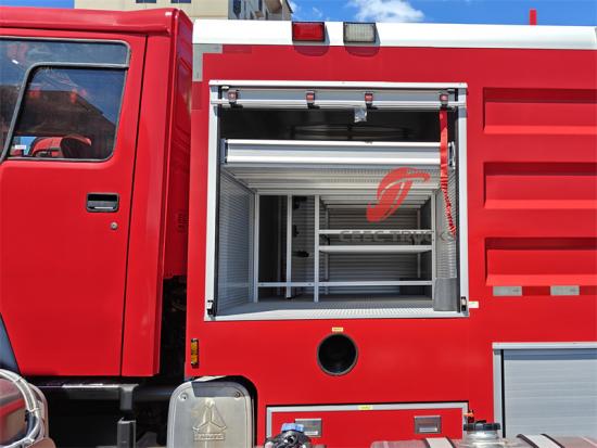 6×4, RHD/LHD can be optionalDas spezielle Feuerwehrrettungsfahrzeug, das auf dem robusten Howo 6x4-Schwerlastfahrgestell aufgebaut ist, verfügt über eine hervorragende Leistung von 371 PS, kann alle Arten von schwierigen Straßen bewältigen und legt eine gute Grundlage für die Notfallrettung im Brandfall. Das Howo-Feuerwehrfahrzeug ist mit einem 6000-Liter-Großwassertank und einer PS-Profi-Feuerlöschpumpe mit einer langen Sprühweite von bis zu 65 m ausgestattet. Eine Bedienungseinführung, eine optionale Bedienfeldsprache und eine Vielzahl optionaler Konfigurationen werden angeboten, um unterschiedlichen Anforderungen gerecht zu werden. Dieses Howo-Feuerlöschfahrzeug bietet zuverlässigen Schutz für die Brandsicherheit und zeigt hervorragende Leistung und Flexibilität. Die zweireihige Kabine des Howo-Feuerwehrfahrzeugs bietet ausreichend Platz und Qualität, um Feuerwehrausrüstung zu laden und gute Fahreigenschaften aufrechtzuerhalten. Die Kabine bietet Platz für 5 Feuerwehrleute und ist mit einer Klimaanlage ausgestattet, um sicherzustellen, dass sich der Fahrer bei jedem Wetter wohlfühlt.