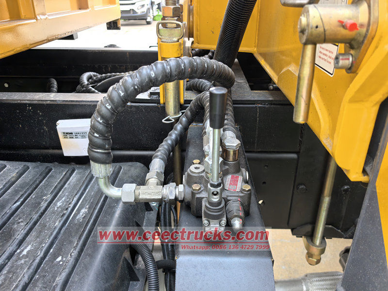 Der obere Teil des HOWO Einachs-4-Tonnen-Autokrans ist clever konstruiert und integriert zwei Funktionsmodule – den Kasten und den Kran – und bietet so den Komfort eines Fahrzeugs für vielfältige Einsatzmöglichkeiten. Der Kasten hat die Abmessungen 3800 × 2400 × 450 mm und besteht aus hochfestem Kohlenstoffstahl. Die dreiseitige und vierbodenseitige Konstruktion gewährleistet nicht nur die Langlebigkeit des Kastens, sondern verbessert auch effektiv die Ladekapazität. Ob Baumaterialien, Ausrüstungszubehör oder andere Schüttgüter – er lässt sich problemlos verladen.
