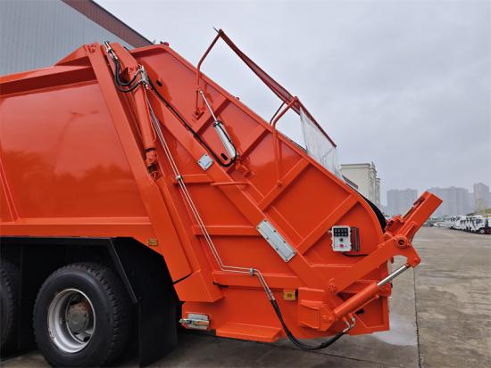Der HOWO TX Müllwagen mit Verdichtungsanlage Der Verdichter vereint eine hochfeste Struktur, intelligente Steuerung und ein effizientes Hydrauliksystem. Sein Gehäuse besteht aus 6 mm starkem, hochfestem Manganstahl T420 und zeichnet sich durch ein stromlinienförmiges Design aus, das nicht nur die Ästhetik verbessert, sondern auch Verformungen widersteht. Die vollständig umgebördelte Bodenplatte minimiert das Risiko von Leckagen. Das Ladesystem, angetrieben von einer Zahnradpumpe eines renommierten Herstellers und einem Mehrwegeventil, arbeitet mit externen Hydraulikzylindern und bidirektionaler Kompressionstechnologie zusammen. Dadurch wird ein Kompressionsverhältnis von über 1:2,5 erreicht, mit einer Zykluszeit von 25 Sekunden und einer Ladekapazität, die 2,5-mal höher ist als die von nicht-komprimierenden Müllwagen gleicher Tonnage. Das intelligente CAN-Bus-Steuerungssystem unterstützt drei Betriebsmodi: manuell, automatisch und ferngesteuert. Ausgestattet mit einem dreistufigen hydraulischen Filterschutz und einem großvolumigen Abwassertank, erhöht der Verdichter seine Betriebssicherheit und Anpassungsfähigkeit an komplexe Arbeitsbedingungen deutlich.