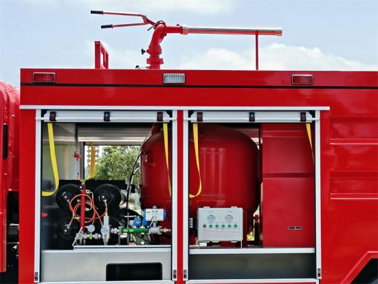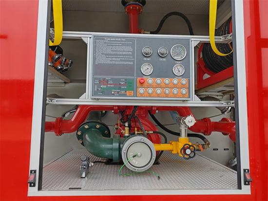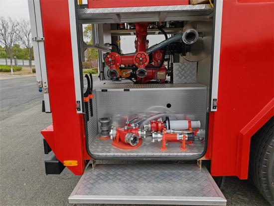 Die Feuerlöschpumpe wird über die Zapfwelle angetrieben und hat einen Druckbereich von 1,6–2,5 MPa sowie eine Fördermenge von 80–120 kg/s. Die Feuerlöschkanone hat eine Sprühgeschwindigkeit von 60–100 kg/s und eine Reichweite von 40–60 Metern und kann effektiv auf verschiedene Brandsituationen reagieren. Howo Feuerwehrwagen ist außerdem mit einer kompletten Standardausrüstung für die Feuerwehr ausgestattet, wie Schaufeln, Brecheisen, Äxte und Schneidgeräte; Leitern und Flutlichtstrahler sind optional erhältlich.