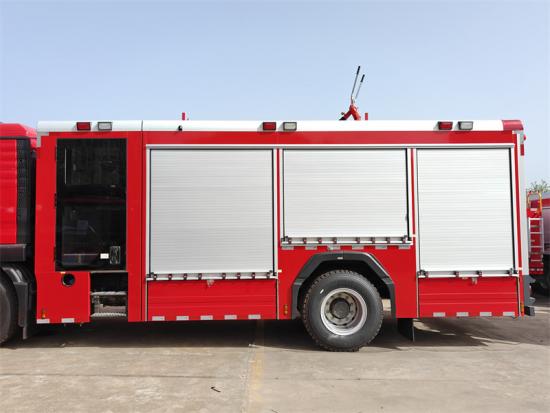 4×4, RHD/LHD can be optionalDies ist ein Löschwasser-Rettungsfahrzeug auf Basis eines Howo-Geländefahrgestells. Es ist mit einem leistungsstarken WD615.97E-Motor mit 300 PS ausgestattet, verfügt über einen 4x4-Allradantrieb, ein schnelles 10-Gang-Getriebe und erreicht eine Höchstgeschwindigkeit von 115 km/h. Es ist einfach zu bedienen, passt sich an verschiedene komplexe Straßenbedingungen an und bietet effiziente Unterstützung bei der Brandbekämpfung. Das Howo 4x4-Löschfahrzeug verfügt über einen 6000-Liter-Wassertank aus Kohlenstoffstahl und einen 1500-Liter-Schaumtank. Die Feuerlöschpumpe wird über eine Zapfwelle angetrieben und hat einen Druckbereich von 1,6–2,5 MPa sowie eine Durchflussrate von bis zu 36 l/s. Es bietet eine stabile Leistung und bietet grundlegende Garantien für Brandbekämpfung und Rettung. Die Feuerkanone hat eine Sprühgeschwindigkeit von 45 l/s und eine Reichweite von 55–65 Metern, sodass sie verschiedene Brandsituationen effektiv bewältigen kann. Das Howo 4x4-Feuerwehrauto ist außerdem mit einem vollständigen Satz Standard-Feuerlösch- und Rettungsausrüstung wie Schaufeln, Brechstangen, Äxten und Schneidgeräten usw. ausgestattet. Leitern und Flutlichter sind optional.