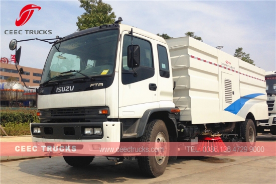 CEEC TRUCKS liefert ISUZU 12.000L Straßenkehrmaschine ist das meistverkaufte Modell, das einen kompletten Materialtankwagen aus Edelstahl, einen originalen Italien- oder Amerika-Motor für einfache Bedienung, einen ISUZU- oder JMC 57KW-Hilfsmotor verwendet. Sekundärverschmutzung effizient vermeiden.