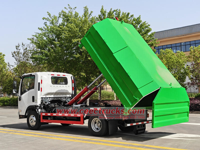 Merkmale: Der Müllwagen mit Hakenarm von Isuzu ELF bietet die Vorteile einer vernünftigen Struktur, einer einfachen Bedienung, Stabilität und Effizienz, einer guten Dichtungsleistung und einer bequemen Entleerung.