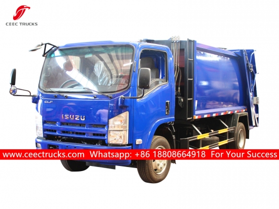 ISUZU 8.000 Liter Müllverdichterwagen, ISUZU 700P 4*2-Fahrgestell, ISUZU 190 PS Dieselmotor, MLD 6-Gang-Schaltgetriebe für einfaches Fahren, SPS-Steuerbox.