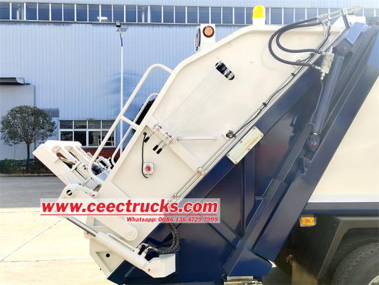 Hinterer Lademechanismus:Es verfügt über einen hinteren Flip-Müllhebemechanismus, der es dem Fahrzeug ermöglicht, einen Standard-Müllbehälter leicht zu verbinden und zu drehen, um eine automatische Belastung von Müll zu erzielen Dieses Design hilft, Müll einfach und effizient zu laden