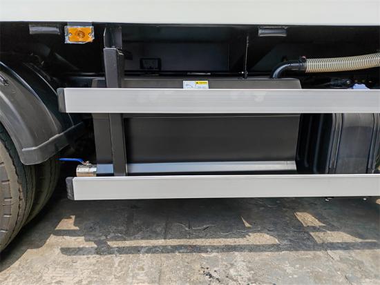 Die hohe Schaufelkante des Isuzu FTR Heckladers sorgt für eine bessere Rückhaltewirkung. Beim Anheben und Entleeren der Mülltonne mit dem Hubarm wird verhindert, dass der Müll aus dem Fahrzeug geweht oder verstreut wird, insbesondere bei starkem Wind oder leichtem Müll (z. B. Papierreste, Plastiktüten). Der Müll fällt von der oberen Schaufelkante in den tiefen Teil der Tonne. Dadurch wird das Risiko von Rückprallen oder Herausspritzen am Eingang verringert und der Arbeitsbereich sauber und hygienisch gehalten.