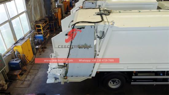 Das Herzstück des Müllheckladers ist der Kompressionsmechanismus (wie Schaber und Gleitplatten) zum Verdichten des losen Mülls. Der Isuzu GIGA F-serious 16CBM Müllverdichterwagen bewegt sich normalerweise von der Rückseite zur Vorderseite der Box hin und her.