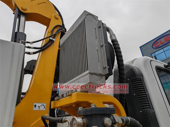 Die Bedienung des Krans und seines Greifers erfolgt über den manuellen Hydraulikhebel am oberen Bedienpult des Krans. Diese Konstruktion ermöglicht dem Bediener eine intuitive und präzise Steuerung aller Kranbewegungen – ob Heben, Senken, Drehen oder Greifen – und ist damit kinderleicht. Gleichzeitig ist der Kran mit H-förmigen Auslegern ausgestattet, die für eine stabile Unterstützung des Kranbetriebs sorgen und Sicherheit und Stabilität während des Betriebs gewährleisten.