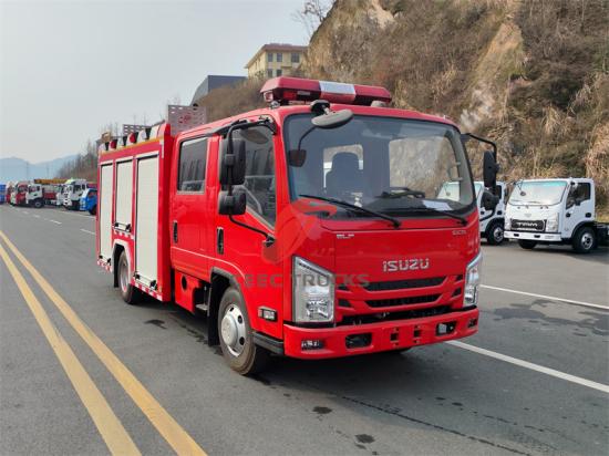 4×4, RHD is optionalDas Feuerwehrfahrzeug basiert auf dem robusten und leichten ISUZU NPR Doppelkabinen-Chassis. Es vereint hervorragende Leistung mit umweltfreundlichen Emissionen und ist für alle anspruchsvollen Straßen geeignet. Es ist mit einem 4000-Liter-Wassertank und einer professionellen Feuerlöschpumpe ausgestattet und bietet eine große Sprühweite sowie optionale Sprachbedienung. Darüber hinaus bietet es verschiedene optionale Löschkonfigurationen für unterschiedliche Anforderungen. Isuzu NPR Doppelkabinen-Feuerwehrfahrzeug Die klassische ELF-Doppelreihenkabine bietet ausreichend Platz und ein komfortables Arbeitsumfeld. Das CEEC-Werk legt Wert auf die Fertigung eines hochwertigen Hauptrahmens, der die Aufnahme von Feuerwehrausrüstung und die Aufrechterhaltung guter Fahreigenschaften ermöglicht. Die Kabine bietet Platz für fünf Feuerwehrleute und ist mit einer Klimaanlage ausgestattet, um dem Fahrer bei jedem Wetter Komfort zu bieten.