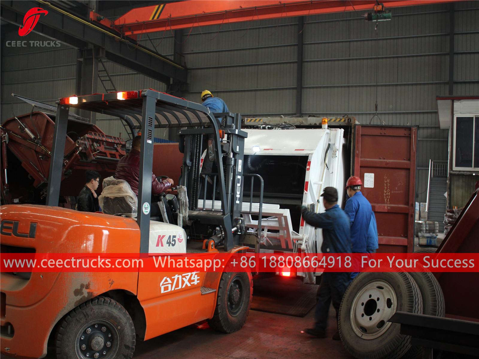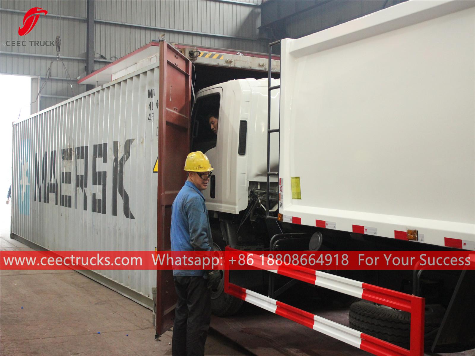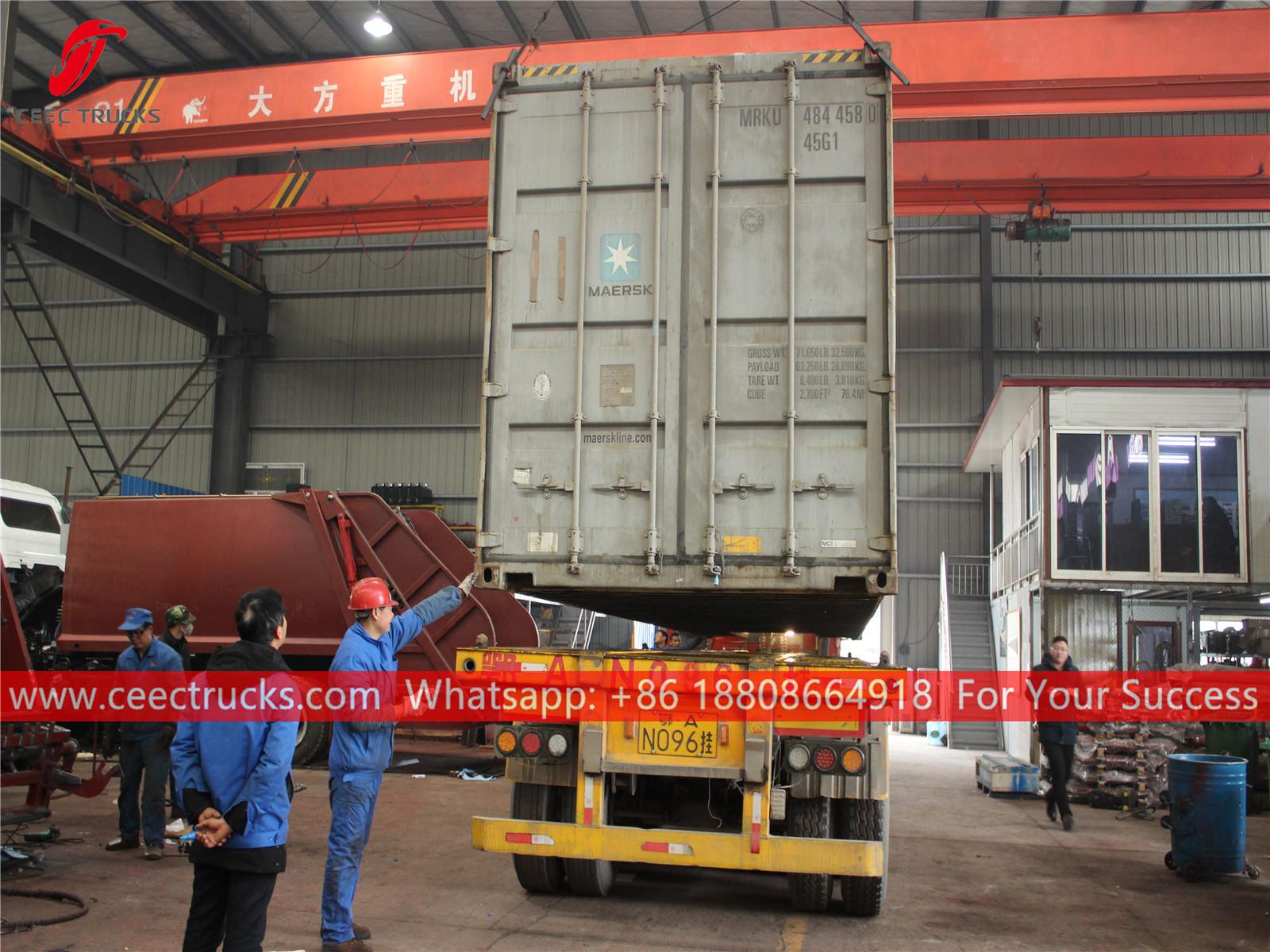 Müll-Hecklader, wie er per 40 Fuß verschifft werden soll