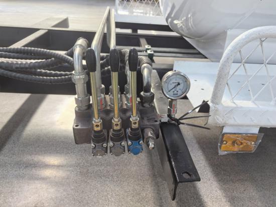 ● Der Fäkalientankwagenaufbau mit MORO-Pumpe ist mit einem hydraulischen Kippsystem ausgestattet, das es ermöglicht, den Tankaufbau in einem weiten Winkel anzuheben, wodurch eine gründlichere Schlammentleerung gewährleistet und der Arbeitsaufwand für die manuelle Reinigung reduziert wird.