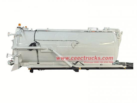 Fäkalientankwagenaufbau mit MORO-Pumpe (auch bekannt als 10.000-Liter-Abwasserreinigungsfahrzeug-Aufbau, Schlamm-Vakuumpumpen-Tankwagen-Aufbau, Gully-Saug-Vakuumwagen-Kit, Vakuum-Abwasser-Saugwagen-Aufbau, Abwasserentsorgungstankwagen-Aufbau) Es wird auf Fahrgestellen montiert, um Flüssigkeiten wie Schmutzwasser, Schlamm, Fäkalien, Rohöl und Feststoffe wie kleine Steine und Ziegel zu reinigen und aufzufangen. Es eignet sich zur Reinigung von Abwasserkanälen, Klärgruben, Abflussrinnen usw. und findet breite Anwendung im Umwelt- und Sanitärbereich.