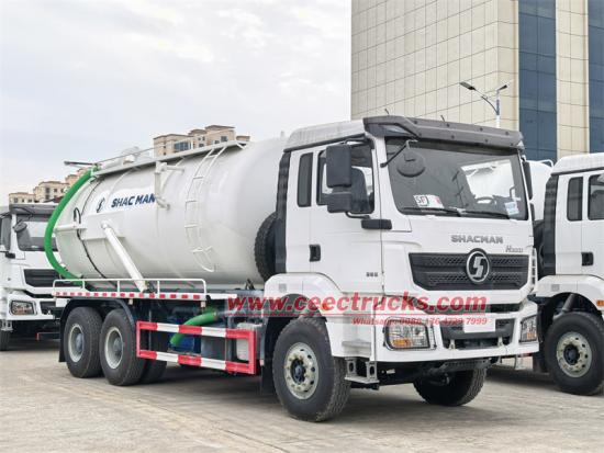 Heavy duty SHACMAN vacuum sewer tanker truck is designed based on H3000 series 6x4 heavy duty truck chassis, equipped with 20000Liters heavy capacity sewage tanker body, matched working with top Chinese brand water cycle vacuum pump 2BE-204, available for pump in and pump out process, suitable for park, community, airport, station and other area, which can efficiently service for sewage suction and transportation, and avoid second pollution.