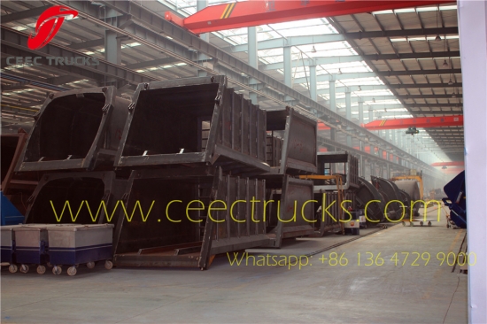 Hochwertiger 12CBM-Müllverdichter-LKW-Hersteller CEEC TRUCKS lieferte die Seitenplattenbaugruppe des Verdichterkörpers, speziell geliefertes hochfestes Stahlmaterial, Dicke für Seite und Boden über 5 mm, Rostschutzlackierung als Standard, Logos nach Bedarf