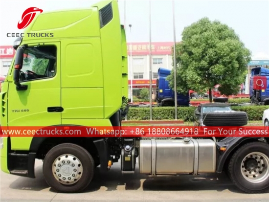HOWO 440 PS Sattelzugmaschine (auch genannt Zugmaschine HOWO, HOWO-Sattelauflieger-Zugmaschine, SINOTRUK HOWO 4X2 Zugmaschine, HOWO-Anhänger-LKW mit großem Pferd, HOWO 6 Wheeler Zugmaschine, neue HOWO-Sattelzugmaschine) ist ein spezieller Motor, der die Antriebskraft zum Ziehen einer gezogenen oder angehängten Ladung liefert.